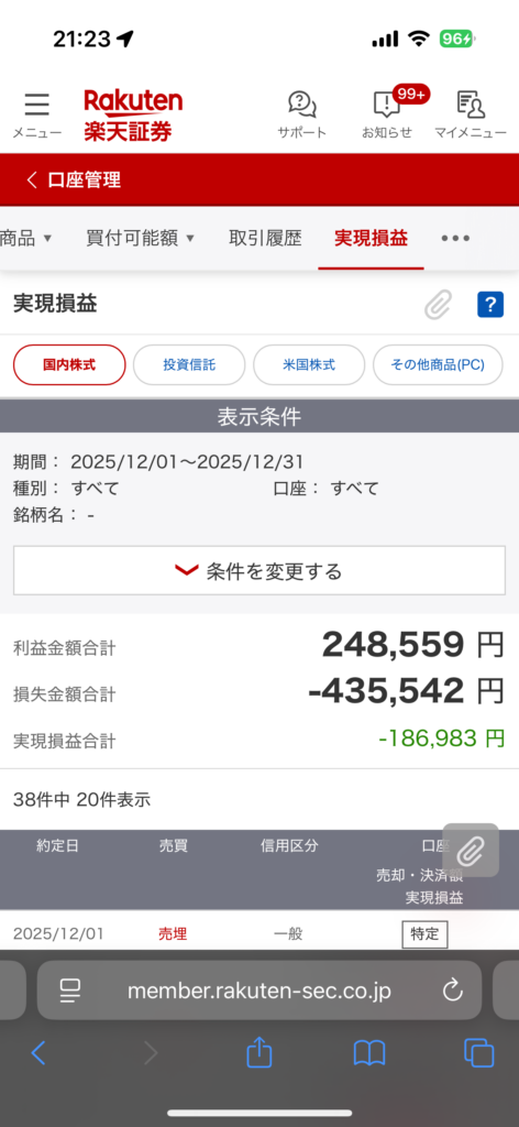 | 12月 | +248,559円 | -435,542円 | -186,983円 | 3,800 |